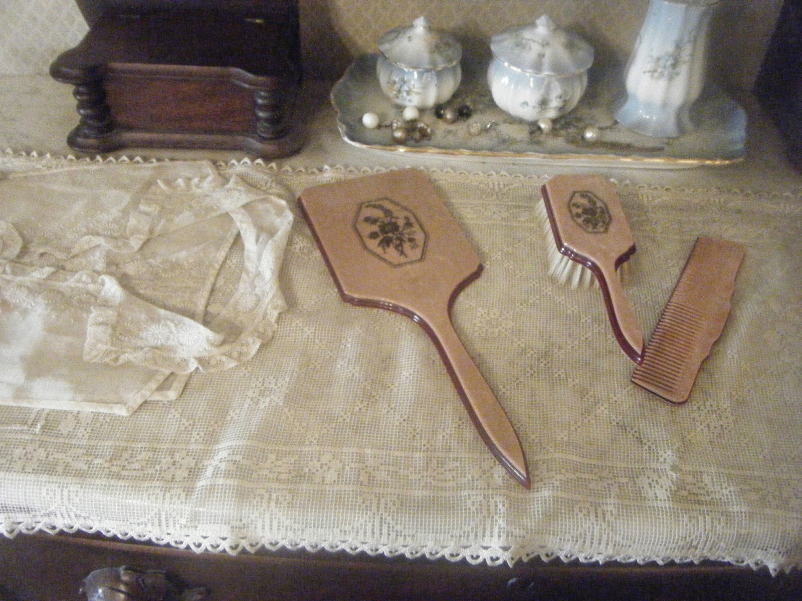 I have a very similar bakelite dresser set that my grandmother gave me.